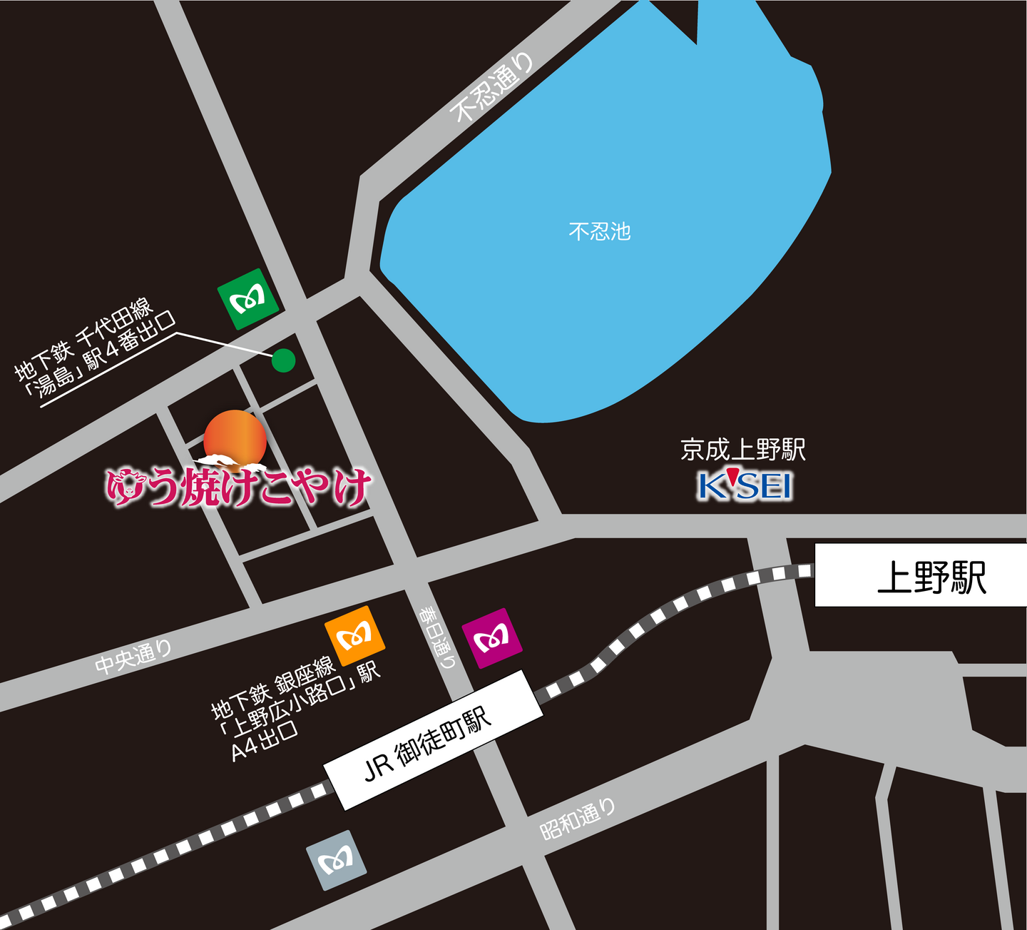 | 最寄駅 | 千代田線「湯島」駅4番出口より徒歩1分 JR「御徒町」駅北口より徒歩4分 JR「上野」駅不忍改札から徒歩10分 営団地下鉄「上野」駅6番出口より徒歩8分 銀座線「上野広小路」駅A4出口より徒歩3分 大江戸線「上野御徒町」駅A4出口より徒歩3分 日比谷線「仲御徒町」駅A4出口より徒歩3分 |